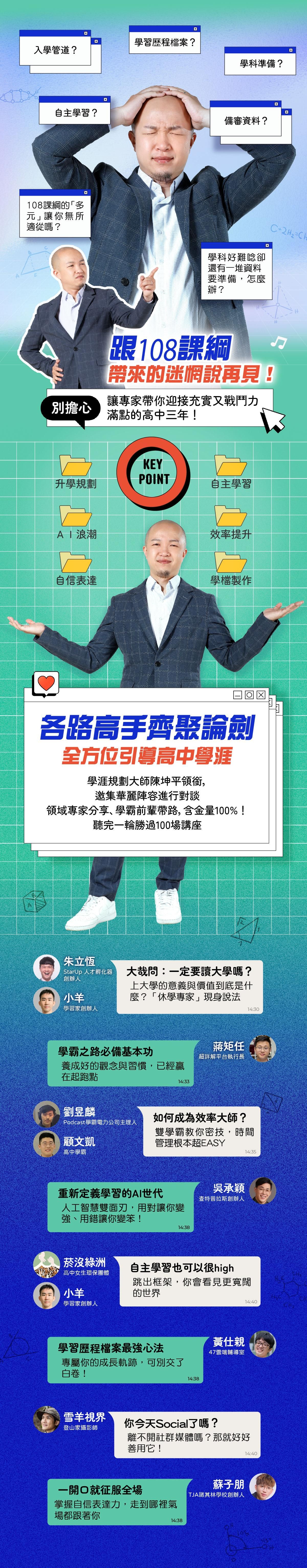 1位學涯導師+11位各路高手=8個精彩單元