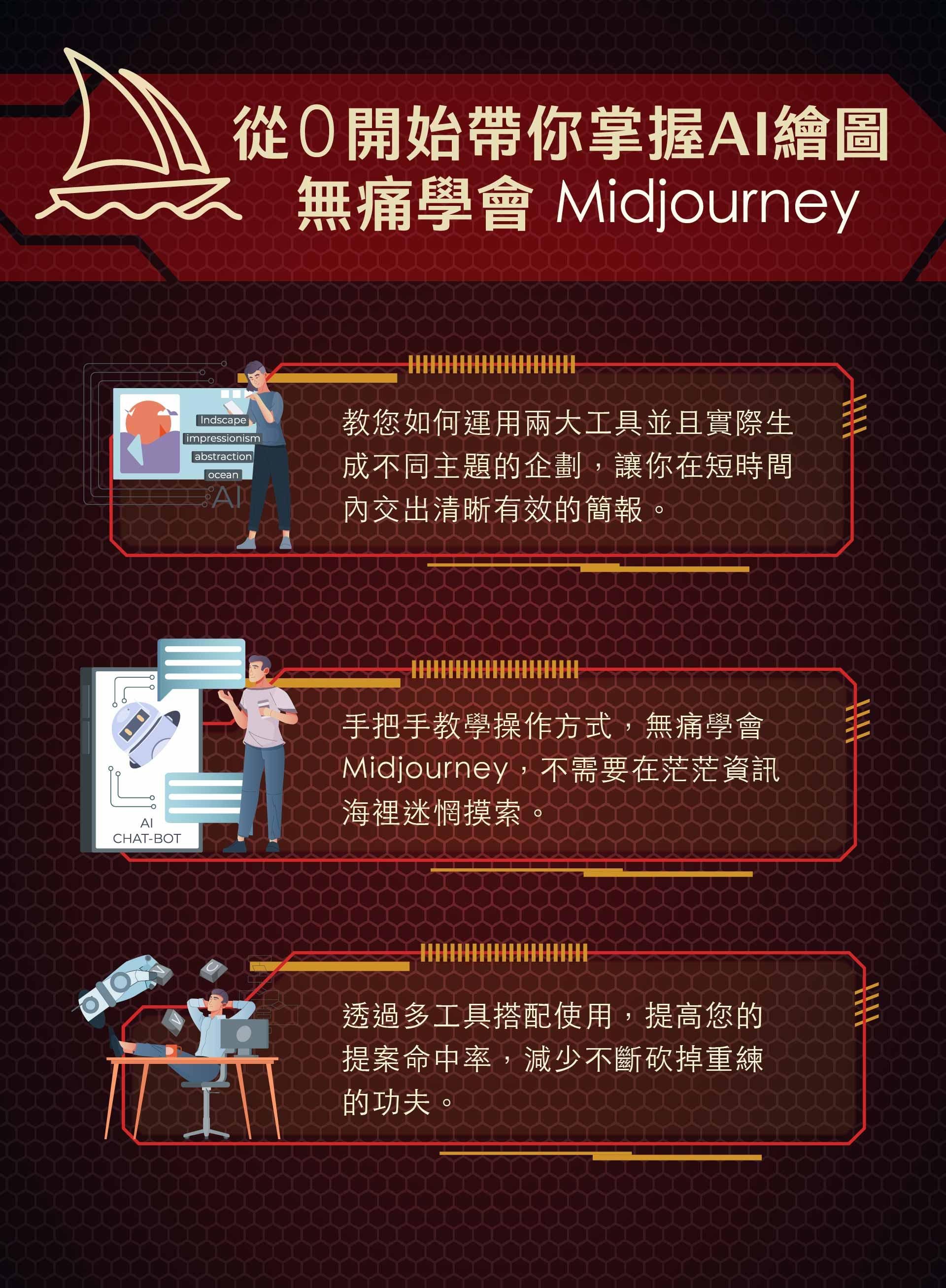 探索多款免費AI圖像生成工具,學習Midjourney的操作方式,並透過ChatGPT聰明應用生成AI圖像。
